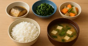 納豆和えとしいたけの味噌汁 とか